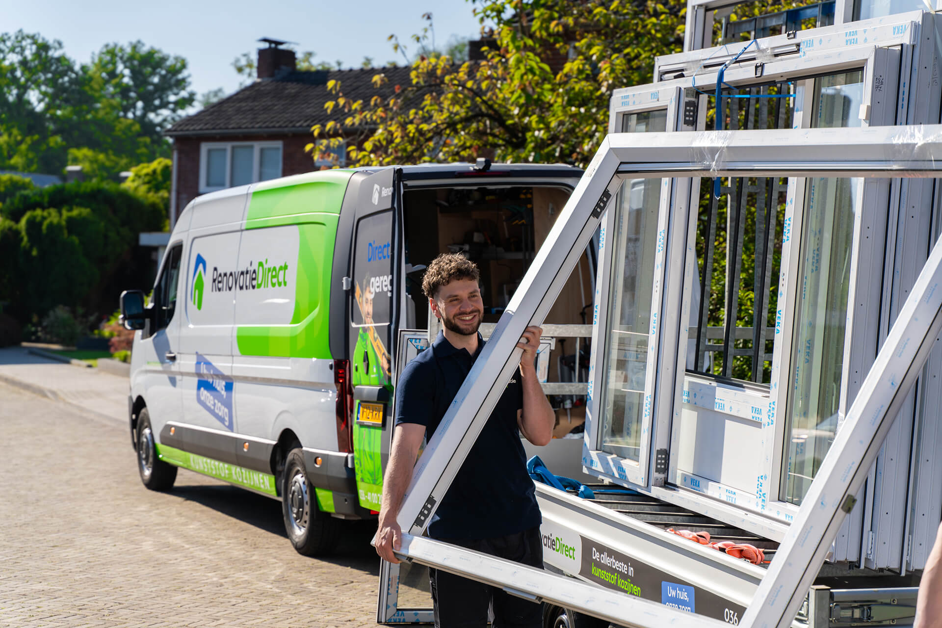RenovatieDirect levert en plaatst VEKA kunststof kozijnen, deuren en schuifpuien in heel Nederland. Al meer dan 10 jaar, met vaste montageploegen, een 4,8 op Trustpilot en 20 jaar profielgarantie.